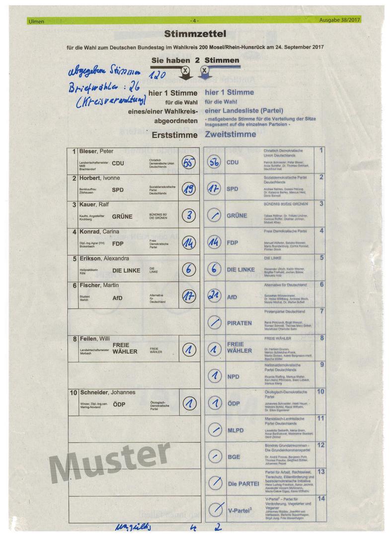 Ergebnis der Bundestagswahl 2017 in Urschmitt am 24.09.2017