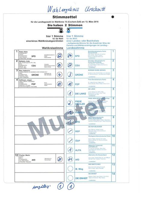 Ergebnis der Landtagswahl 2016 in Urschmitt am 13.03.2016
